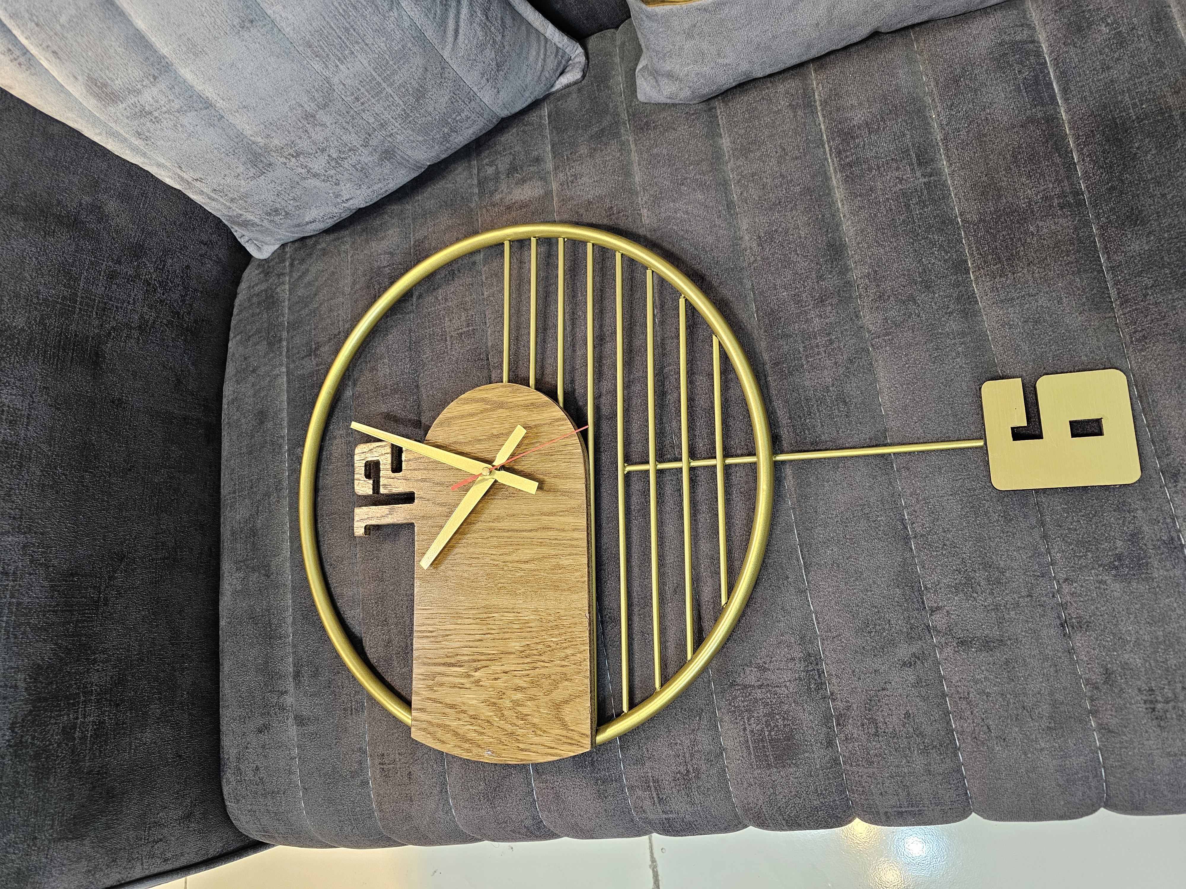 ین ساعت دیواری فلزی با طراحی منحصر به فرد و مینیمالیستی خود، فراتر از یک وسیله برای نمایش زمان است؛ اثری هنری است که به دیوار شما جلوهای خاص میبخشد. ساختار دایرهای دوبل به همراه خطوط متقاطع ظریف، عمق و شخصیت بصری دلنشینی ایجاد میکند.