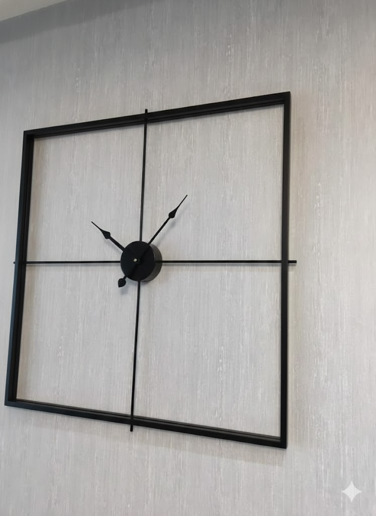 جنس با کیفیت: ساخته شده از فلز مقاوم و بادوام با پرداخت مشکی مات که جلوهای لوکس و پایدار داعقربههای دقیق: حرکت روان و بیصدای عقربهها، آرامش را به فضای شما هدیه میدهد.